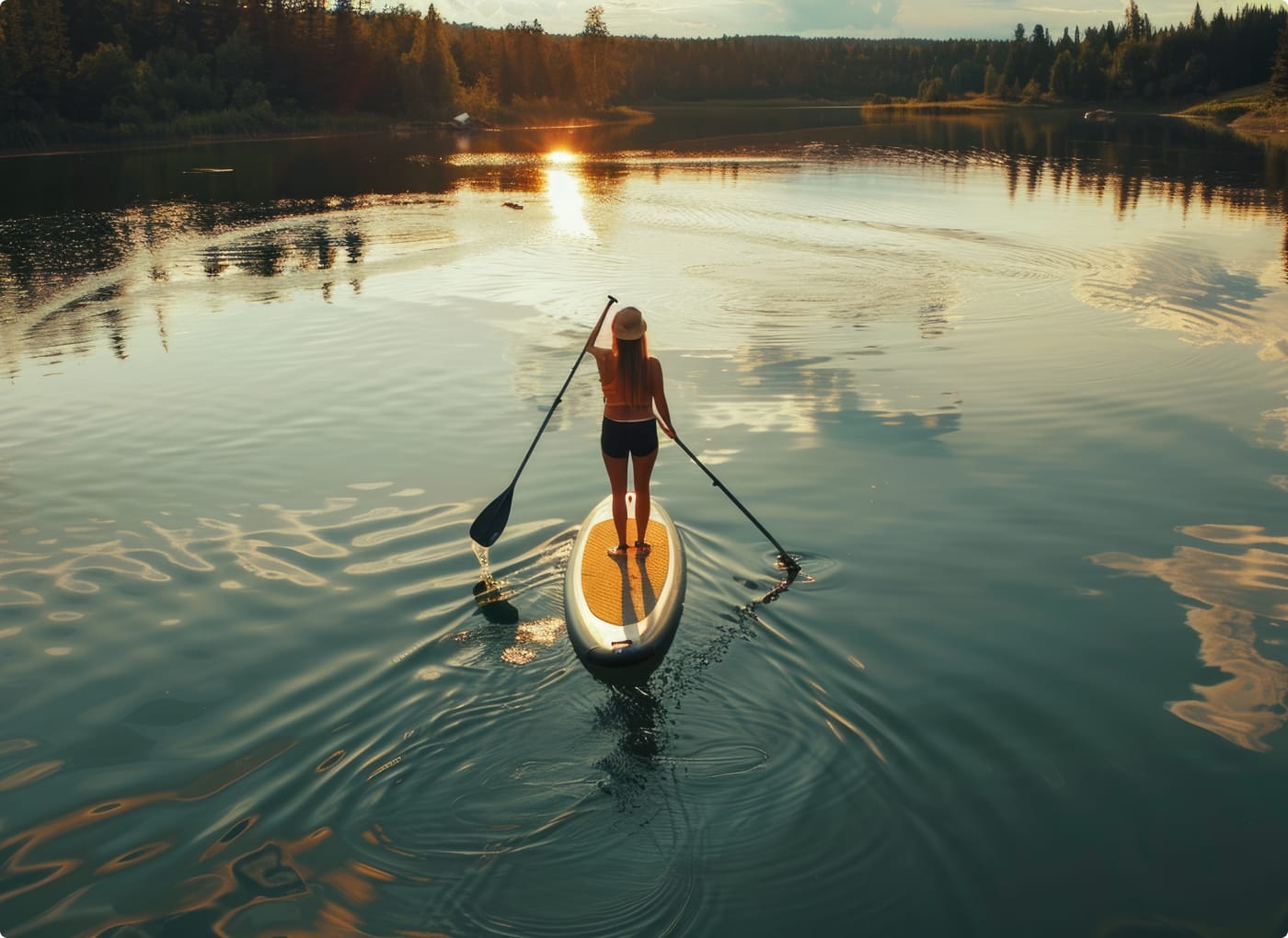 Enjoy nature by paddle boarding in the quiet and peaceful waters.